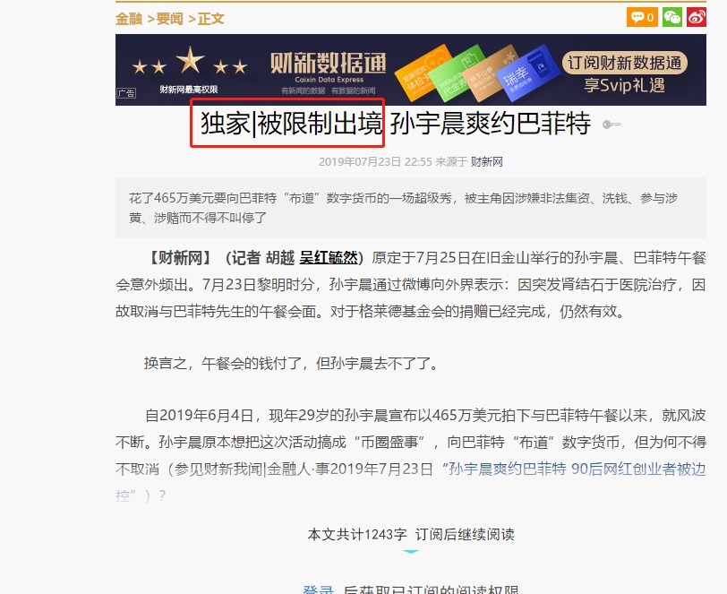 北(běi)京時(shí)間(jiān)7月(yuè)23日(rì)晚間(ji®≈♦☆ān),有(yǒu)媒體(tǐ)報(bào)道(dào)稱,波場(chǎng¥★γ)TRON基金(jīn)會(huì)創始人(Ω↕&βrén)、拍(pāi)下(xià)今年(nián)巴菲特午餐的(de)孫宇¶晨已被邊控,互金(jīn)整治辦已經建議(yì)公安機(jī)關£←對(duì)其立案。