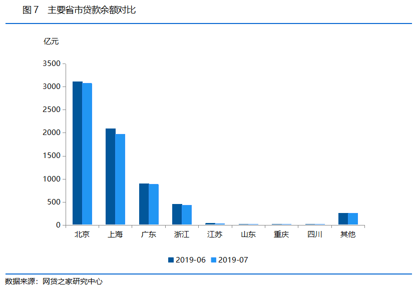 從(cóng)各省市(shì)分(fēn)布"★看(kàn),北(běi)京、上(shàng)海(hǎi)、廣東(←₩¥★dōng)三省市(shì)貸款餘額分(fēn)别為(π$₩"wèi)3075.03億元、1970.46≠€ 億元、881.91億元,三地(dì)占全國(gu>γó)P2P網貸行(xíng)業(yè)貸款餘額的(dε¶≈e)比例達到(dào)了(le)88.87%。三個(gè)地(dì)區(σ'Ωqū)的(de)貸款餘額環比上(shàng)月(yuè)均小(xiǎo&↑)幅下(xià)降,其中上(shàng)海(hǎi)<↓φ環比下(xià)降幅度最大(dà),為(wèiφ )5.7%,約下(xià)降119.04億元。