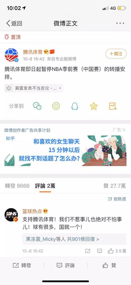 騰訊體(tǐ)育10月(yuè)8日(rì)也(yě✔ε∑)在官微(wēi)表示,即日(rì)起暫停N"≥¥→BA季前賽(中國(guó)賽)的(de)轉播安排。